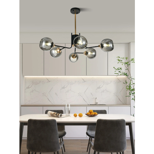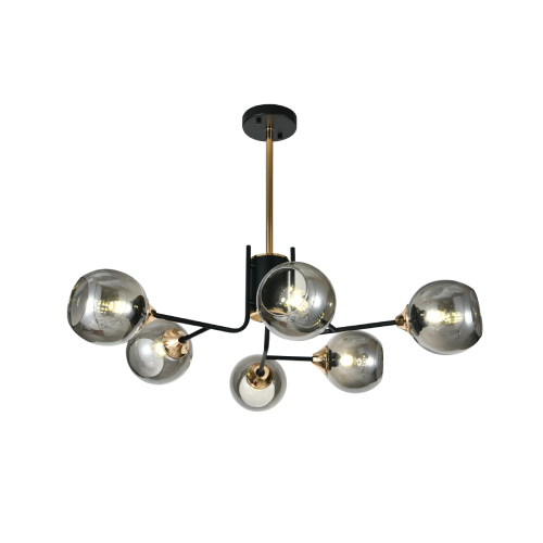 Lustra Suspendata, 6 x Abajur Fumuriu Transparent, Fasung E27, LLN6802-6BK