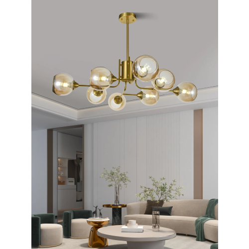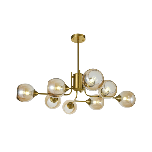 Lustra Suspendata, 8 x Abajur Auriu Transparent, Fasung E27, LLN6802-8TB