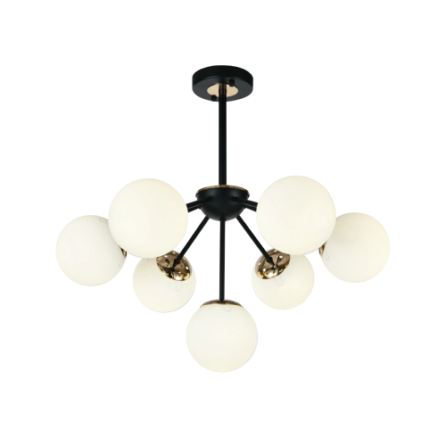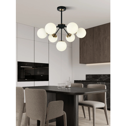 Lustra Suspendata Model Negru, 7 x Abajur Alb, Fasung E27, LLN36368-7BK