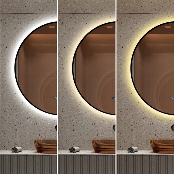 Oglinda LED 70cm Rama Neagra, 3 Lumini, Ceas, Dezaburire si Touch LLJ181